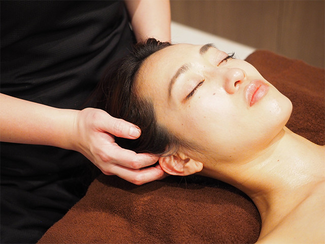 ヘッドスパのアロマの香りで癒されリラクゼーション効果。